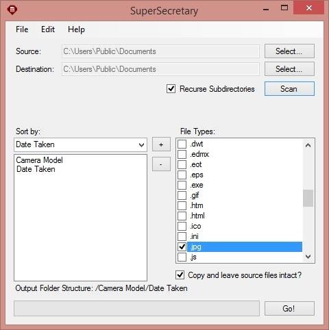 SuperSecretary can sort any types of files into folders to easily manage your photo or music libraries. It can sort by file attributes, EXIF data and more.