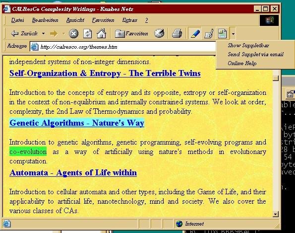 Supplets is a plugin for MS Internet Explorer which allows to make annotations on html pages like on paper, i.e. mark text on web pages and attach notes to text. This supplementary meta-page information is persistent and can be sent to friends via mail.