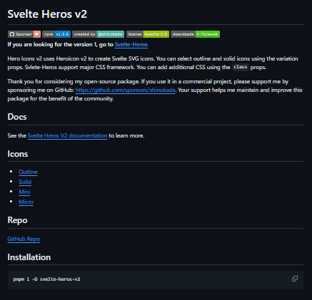 Hero Icons v2 uses Heroicon v2 to create Svelte SVG icons. You can select outline and solid icons using the variation props. Svlete-Heros support major CSS framework. You can add additional CSS using the class props.