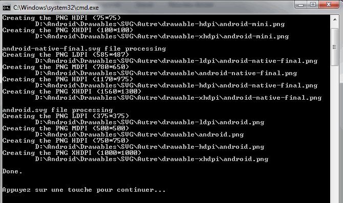 This is a tool for creating PNG files in LDPI, MDPI, HDPI and XHDPI formats from SVG files.