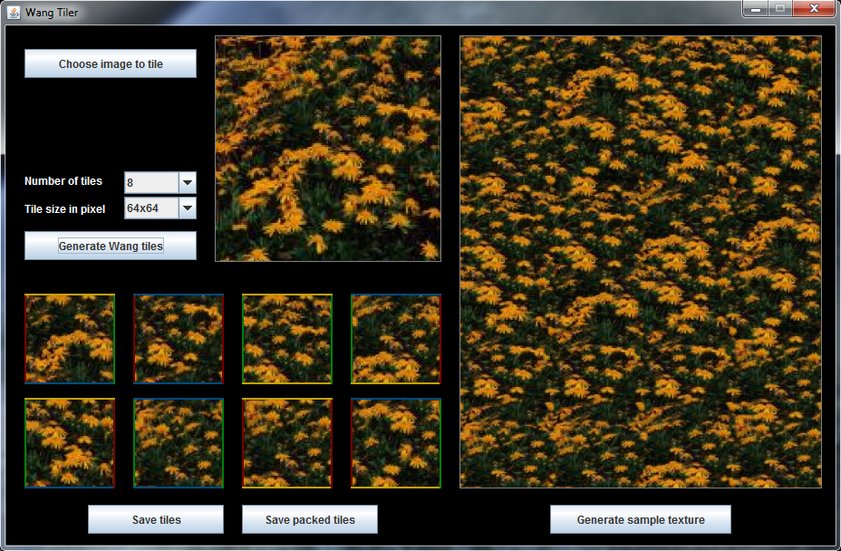 sWangTiler is a java implementation that generates wang tiles from any given input image.