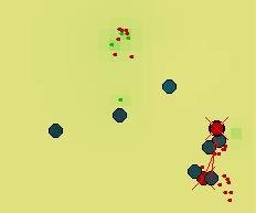 The organisms use swarm intelligence & ant colony optimization. The organisms can communicate through 3-color signaling as well as by laying beacons. They can attack and repair other organisms. They can select mates, and they can gather and distribute food and material.