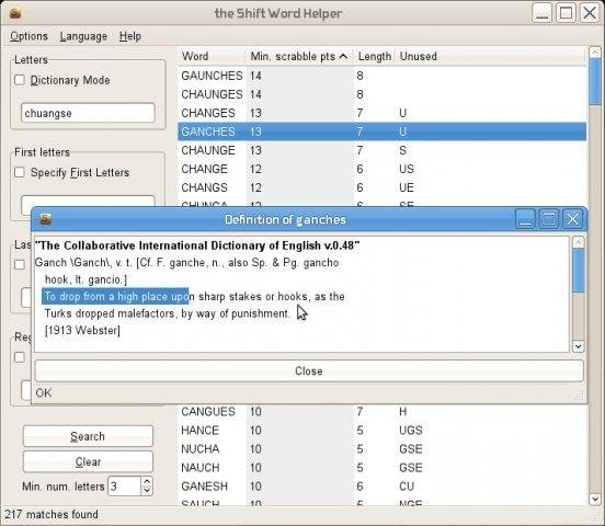 Shift Word Helper is a scrabble-like games helper, which includes an online dictionary client. Shift Word Helper est un bon assistant pour les jeux de mots tels que le scrabble, avec un dictionnaire en-ligne integré. English & french supported