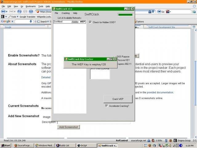 SwiftCrack is a wireless LAN (WLAN) tool which recovers encryption keys. SwiftCrack operates by proactively monitoring transmissions, injecting traffic with known key streams, computing the encryption key when enough packets have been gathered.