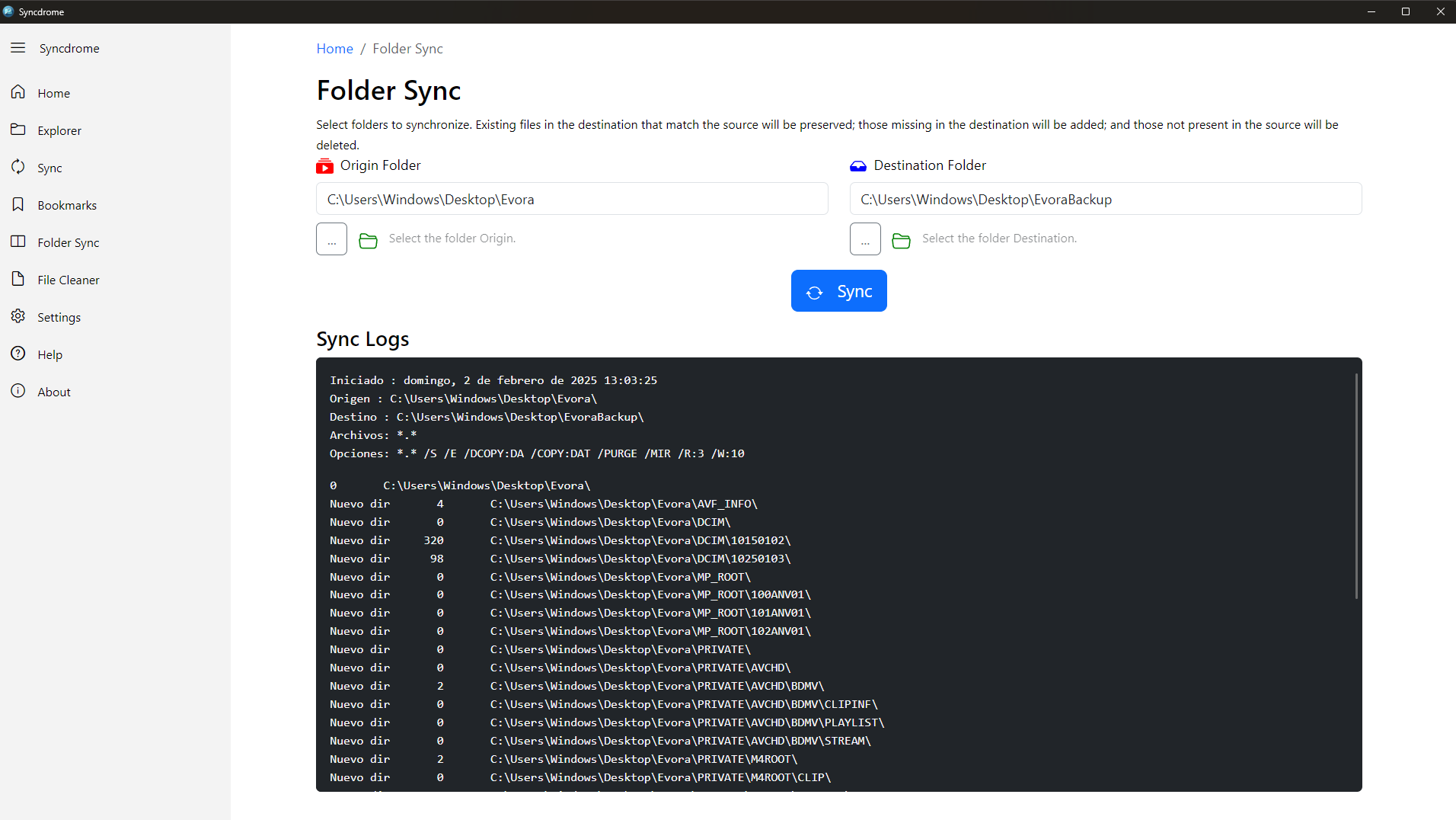 - Folder synchronization between different directories