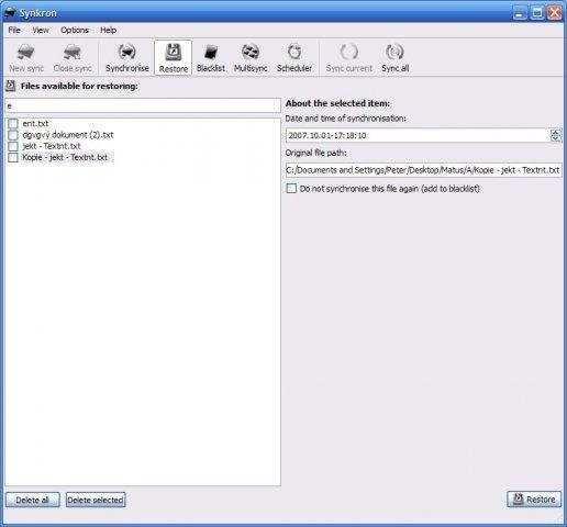 Synkron is very good at 'not responding' When I hit 'Analyse', an hour glass tells me nothing. I have no idea what direction the synchronisation is in. The GUI is next to useless' I tried it twice and uninstalled it. I'm too busy and life is too short for me to waste time on half-baked projects like this.
