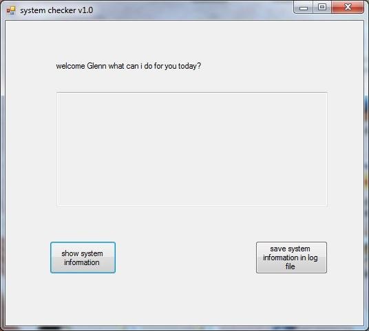 Small program that checks the main system information of your windows system. It shows the machine name, operating system, amount of processors, and more. All the information can be saved in a simple txt log file.