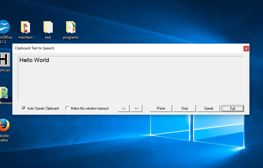 This application will speak the clipboard as soon as you copy text to it. Useful for listening to currently authored content to see how it sounds.