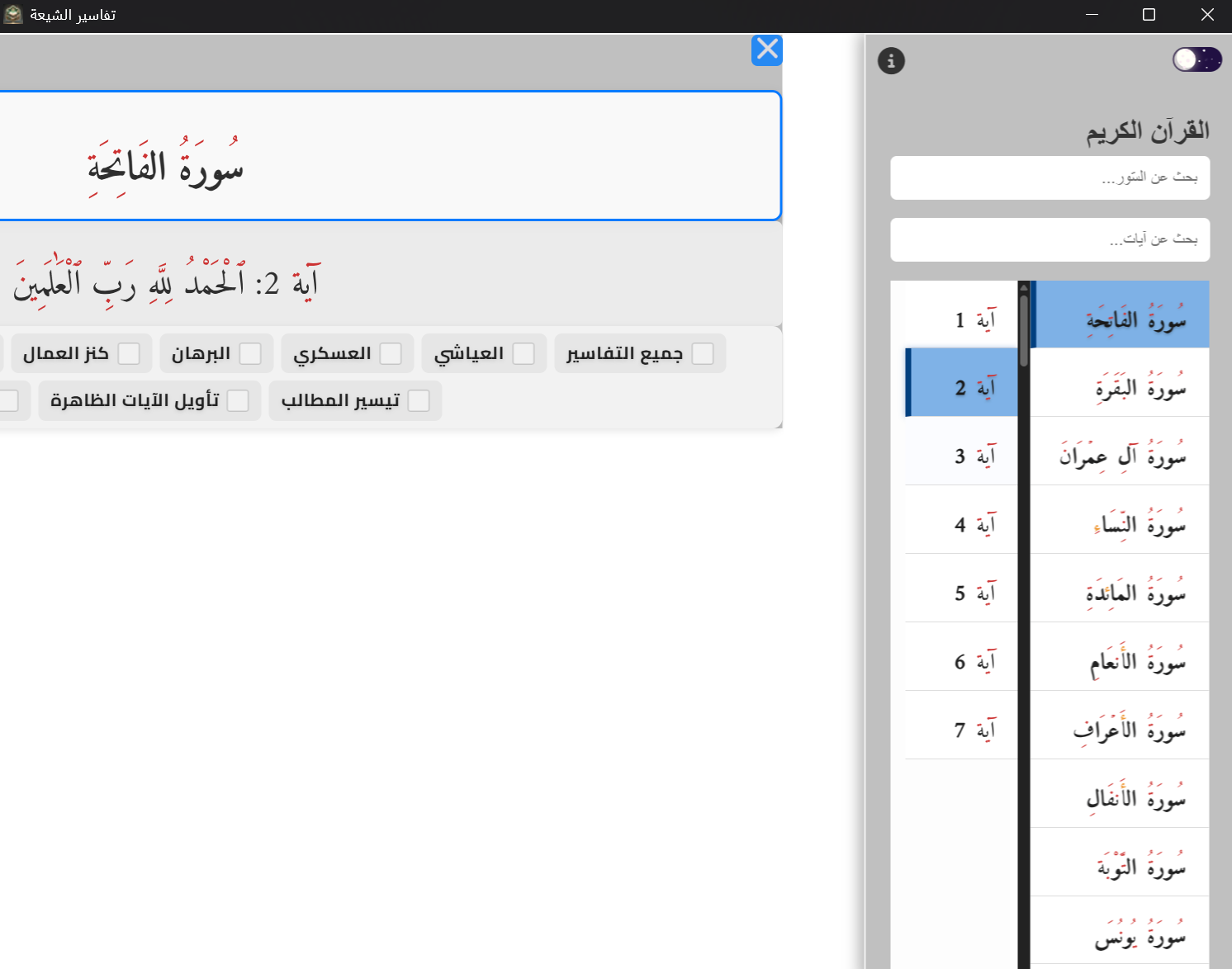 - 📝 عرض جميع التفاسير أو اختيار تفسير واحد حسب الرغبة.