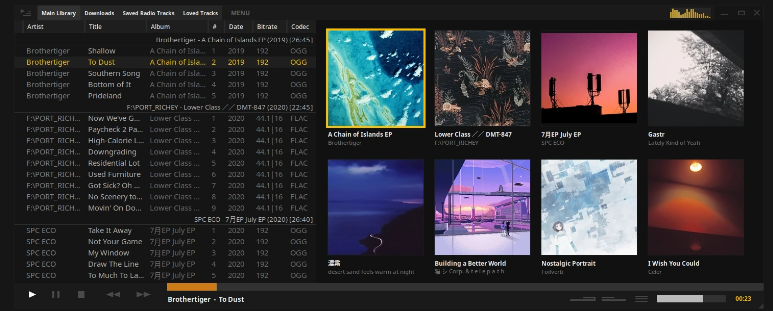 Tauon is a modern, streamlined music player app that's packed with features! An emphasis on playlists and drag-and-drop importing puts you in control of your music library. Faded volume control, 24-bit FLAC support, and gapless playback provide the ultimate listening experience. Excellent CUE sheet support, an original smart playlist system, and network playback from koel or Airsonic servers. Last.fm, Listenbrainz, and Maloja scribbling. MPRIS2 support for desktop integration. Tauon is a playlist-oriented music player that makes the assumption that folders are albums. (You may find the words "album" and "folder" used interchangeably within the interface and documentation) While some features and interface elements may not be immediately intuitive, I hope that once you are familiar, you will find that Tauon is pleasant, fast, and fun to use.