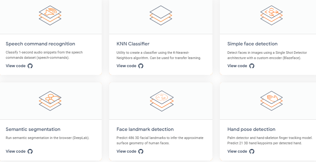 - Explore pre-trained TensorFlow.js models that can be used in any project out of the box