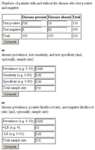 Testcalc is a CGI-based calculator for diagnostic test characteristics written in Perl that displays results both numerically and graphically.