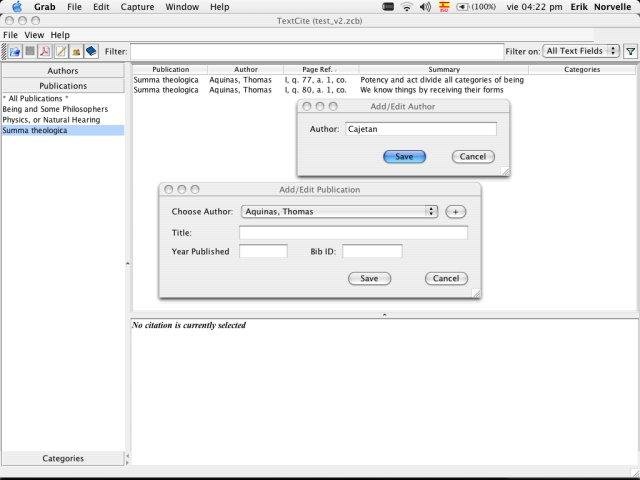 A program for organizing and commenting textual citations from texts (books, articles or other published works) for use in producing scientific or academic publications. Works together with EndNote, RefWorks and BibTeX. Exports to PDF and Word (RTF).