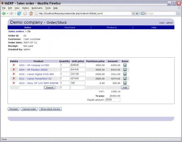ERP application, including point-of-sale (POS), stock (inventory/warehouse), purchase, payables, receivables, general ledger (accounting), payroll, human resource (HR), time tracking, project management. th-ERP is written in PHP and using MySQL