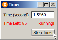 The Simple Timer is a quick and easy timer. It has only 1 point of data input where you set the duration of the timer. The Simple Timer can parse mathematical expressions, so you can readily input an hour as 60*60. During operation, the timer displays the seconds remaining. It beeps after the time has elapsed!