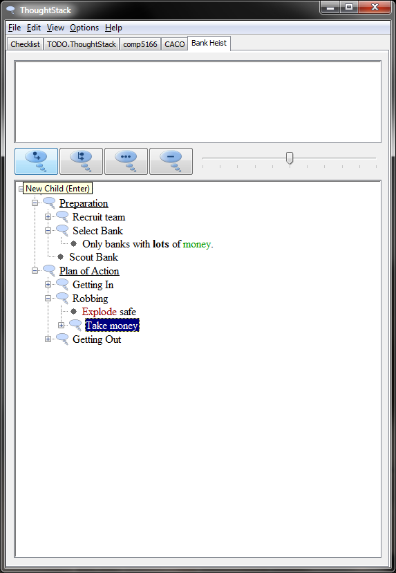 ThoughtStack is a folding-tree-based notepad. It's great for brain storming, outlining, planning, and all your other note-taking needs!
