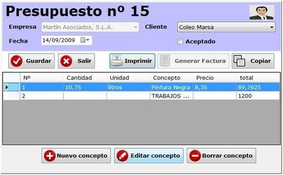 - Numeración automática de presupuestos y de facturas, independientemente de la empresa.