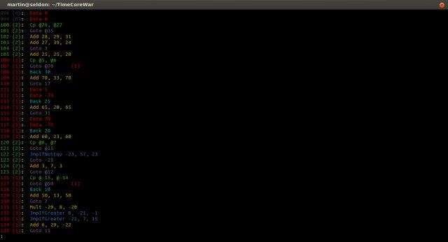 This is an Ocaml implementation of a variant of Core War I’ve invented where programs can travels through time (which can replace the threads).