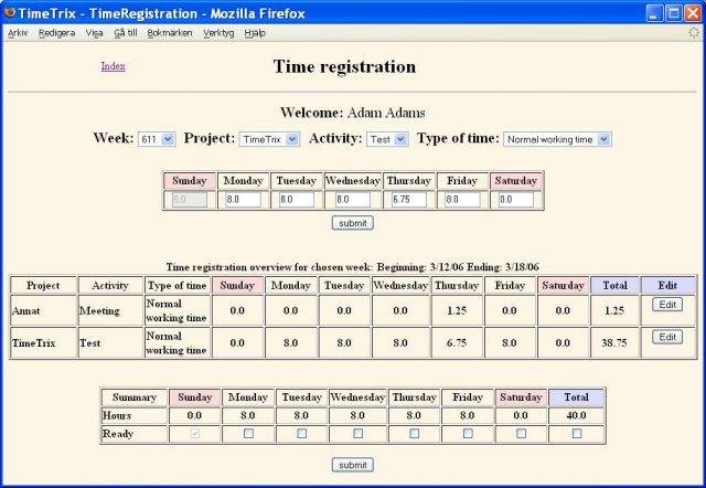 TimeTrix is a web-based time tracking system. Company staff can from web browsers, register and survey times spend on different project activities besides extracting invoice- and salary-basis. TT has multi language support and run servlets on JBoss AS.
