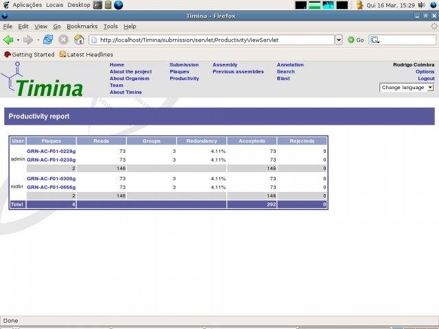 Timina is a Java web-based application for automation of all steps of a genome sequencing project: submission, assembly and annotation of sequences.