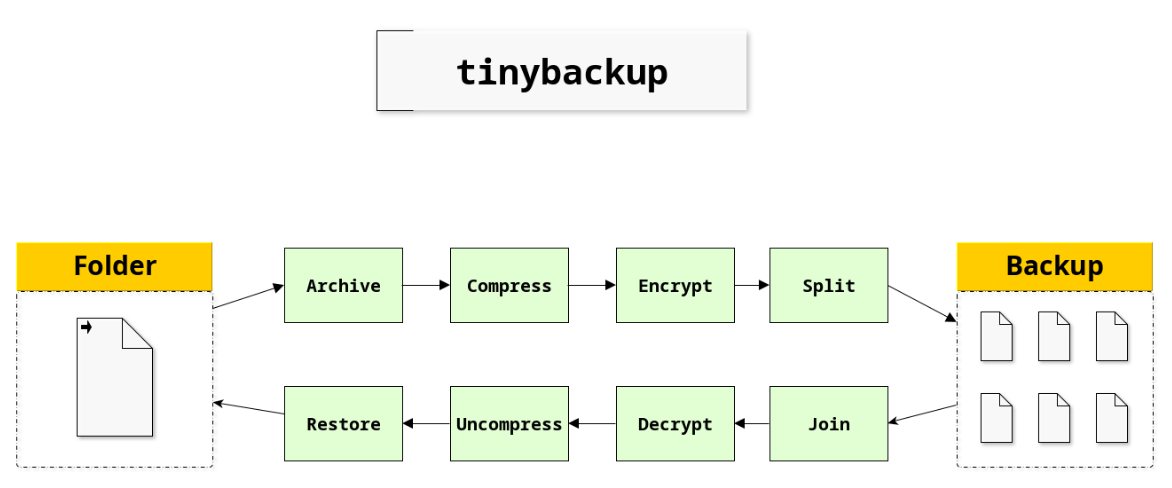 This is a simple bash shell script that creates and restores an encrypted backup using GPG in splitted files of 2GB.
