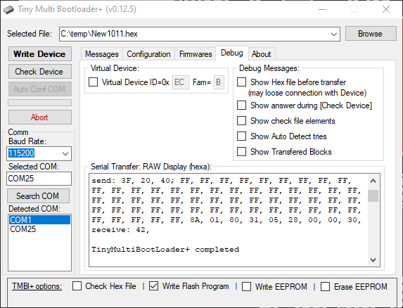 - a PC software which communicates with the bootloader firmware in the device and send the user's program in its memory