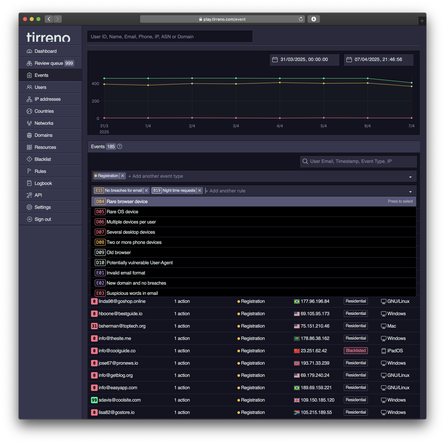 tirreno [tir.ˈrɛ.no] helps understand, monitor, and protect your product from threats, fraud, and abuse. While classic cybersecurity focuses on infrastructure and network perimeter, most breaches occur through compromised accounts and application logic abuse that bypasses firewalls, SIEM, WAFs, and other defenses. tirreno detects threats where they actually happen: inside your product.