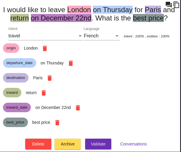 Complete and autonomous NLU solution leveraging opensource libs, such as OpenNLP, Stanford, Duckling and more. Web, mobile, social networks, smart speakers and more. Create your bot once, connect it progressively to multiple channels as you need them. Simple graphical interfaces to build stories and models, manage multilingual and multichannel bots, better understand users with analytics. Program complex stories using Kotlin, Python or Node.js provided components, or integrate with any language by leveraging Tock APIs. Try Tock online, deploy in minutes using Docker running configurations, or setup your own platform to the Cloud, On-Premise, even embedded. More and more teams and companies trust in Tock and open conversational platforms. Built-in connectors for numerous text/voice channels, Messenger, WhatsApp, Google Assistant, Alexa, Twitter and more.