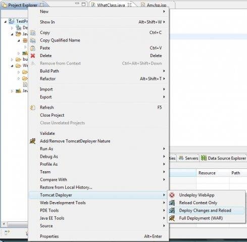 An Eclipse plugin can be used to deploy web project to remote tomcat. You need to install TomcatHelper just as a war file in your tomcat. Please go documentation page for instructions!!!