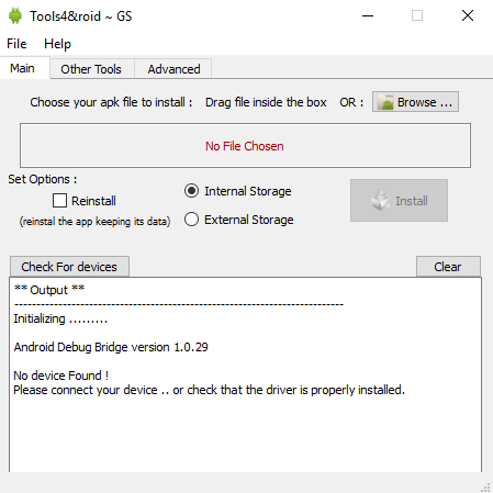Necessary requirements such as adb and fastboot are integrated in the application.