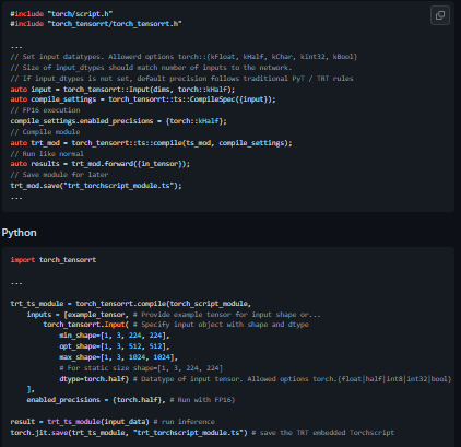 - You have access to TensorRT's suite of configurations at compile time