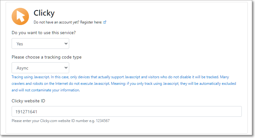 - Asynchronous and Non-Javascript tracking code (as you are selecting)