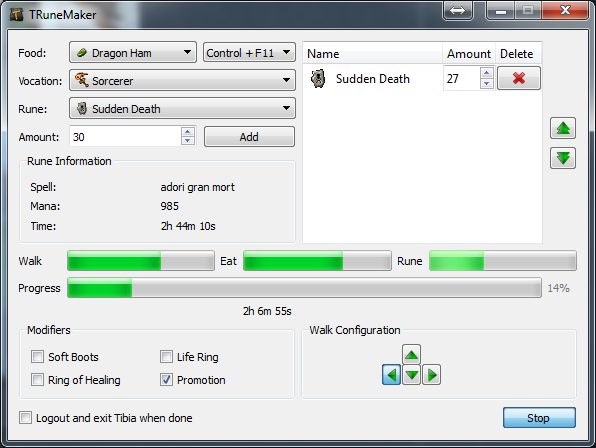 Automatically creates runes in Tibia, eating and moving to avoid the AFK-Kick.