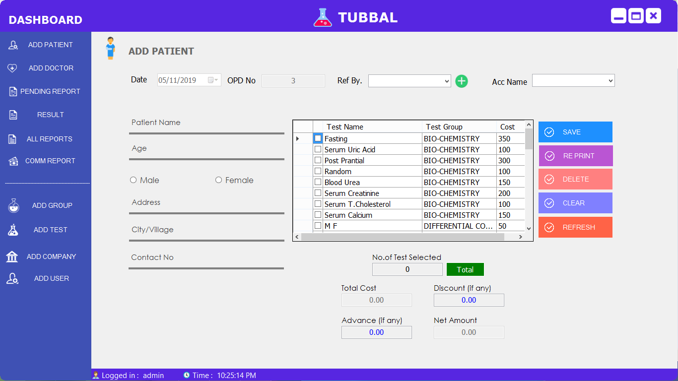 Tubbal was a medical pathology software which is used to generate the report for the blood test, It is an opensource application, Let's try this application. It's completely free software and it was developed by A.Abdul Majeed Ali for more Mail me at: amajeedali1997@gmail.com