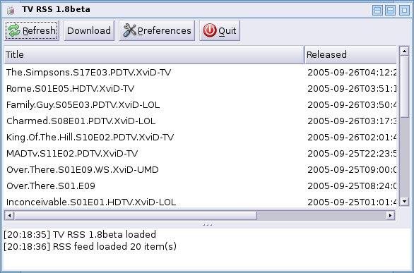 TV RSS Linux Client fetches RSS feed and lets user download or auto download torrents based on regular expressions and launch BitTorrent client of choice. Requires Gtk2-Perl and XML::RAI.