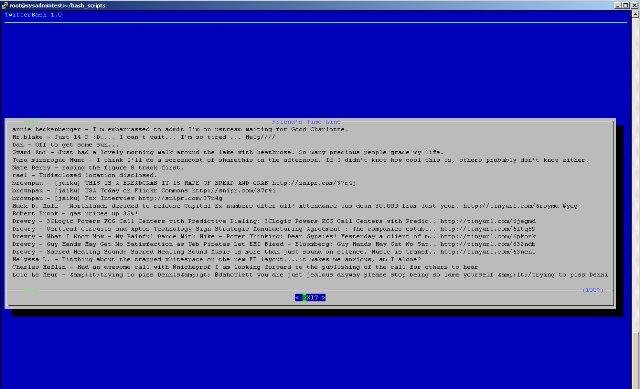 TwitterBash is a shell application for viewing your Friends_TimeLine and for updating your Status on Twitter.