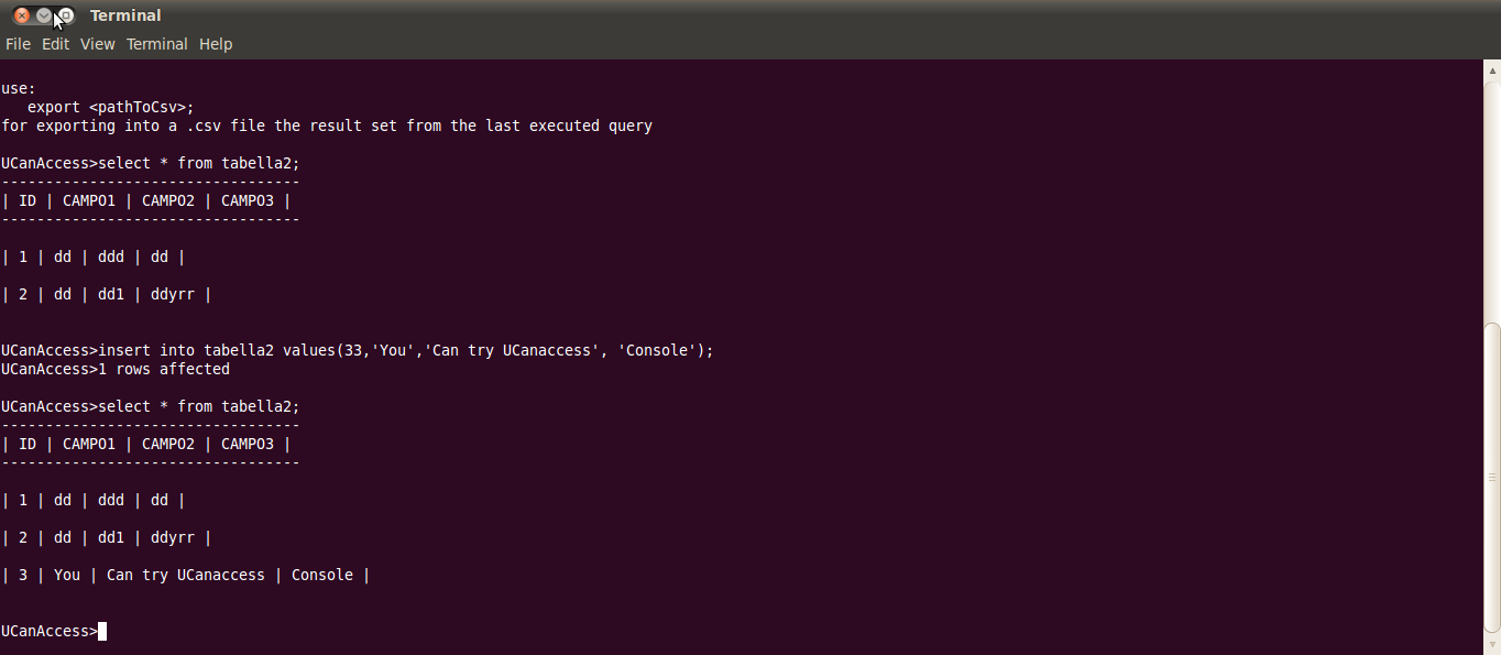 - Command Line Console. You can run SQL commands and display their results. CSV export command.