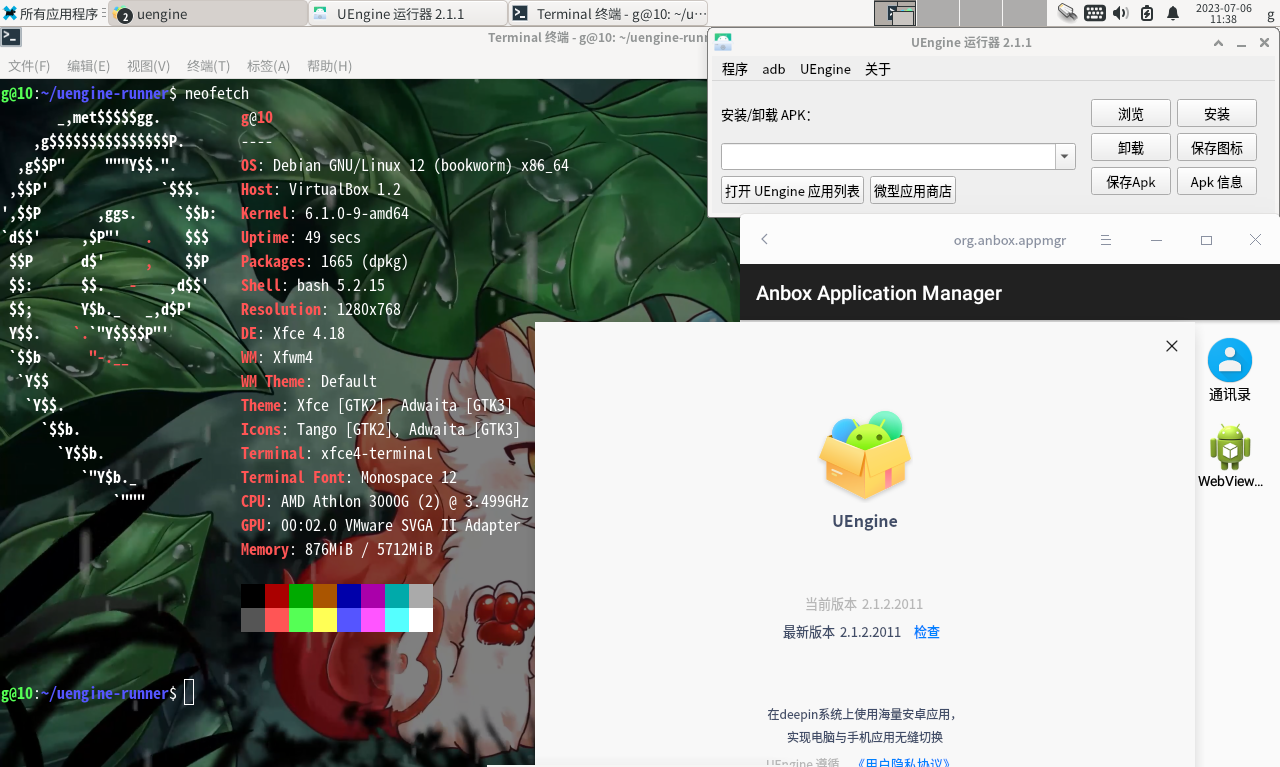 (UEngine is a android environment to run android apps in deepin/UOS system, it is made of anbox)