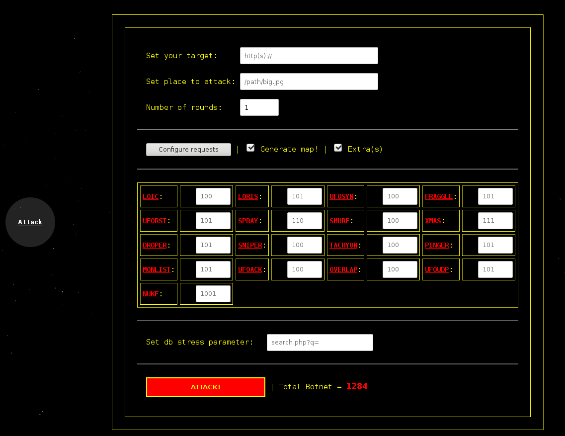 UFONet - Is a set of hacktivist tools that allow launching coordinated DDoS and DoS attacks and combine both in a single offensive.