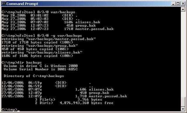 ufs2tools contains tools for reading ufs (ffs) filesystems and bsd labels from windows 2000/XP. both ufs1 and ufs2 are supported.