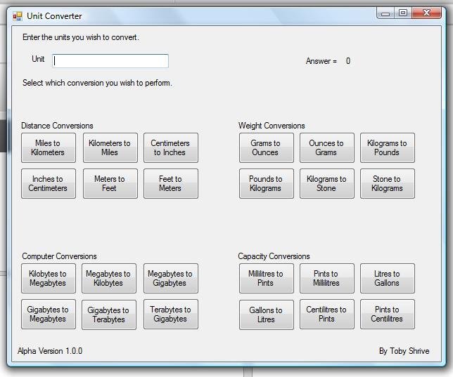 Unit Converter is a software developed to help you convert between two different units (for example, from kilometers to miles).
