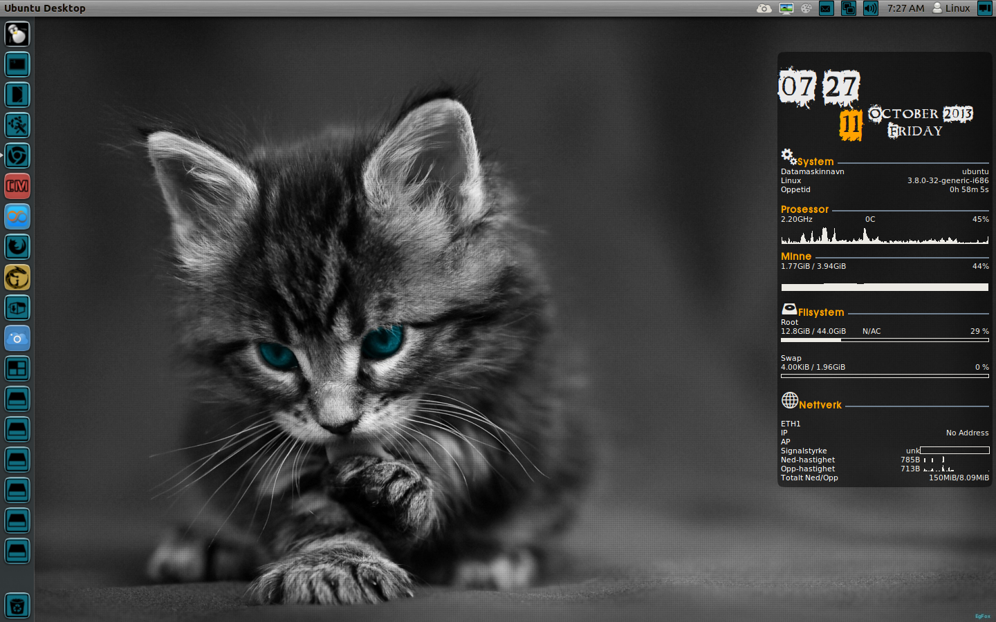 Hello, My all new Unity Dark 2 Re-Spin of 12.04.3. This is a custom Distro pre tweaked with Compiz, Themes,Conkys, Icons, Gtk,plugins,will play dvds,play mp3's,I have updated this Distro a lot new Tweaks with compiz,Live wallpaper, Etc. You will not see many Distros tweaked out like this Distro.Stable custom beta release. Cheers jesse