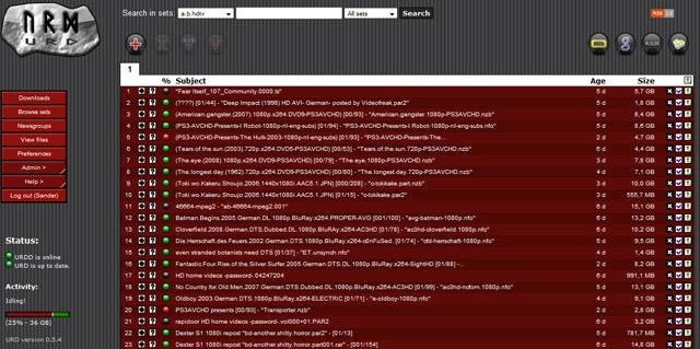 Urd is a 'point and click' web-based usenet binary download manager. It uses a database (e.g. mysql) to store all information. Articles are aggregated into sets and you can download a whole set at once. It also supports Spots, NZB files and RSS feeds.