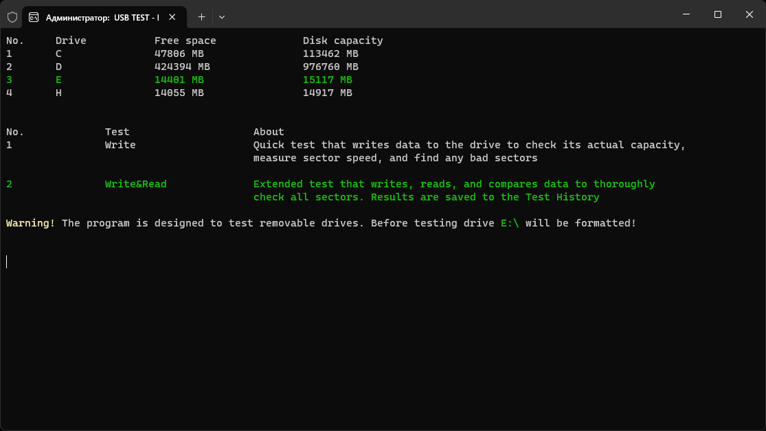 USB Test is a lightweight and portable utility written in C++ for checking removable drives.