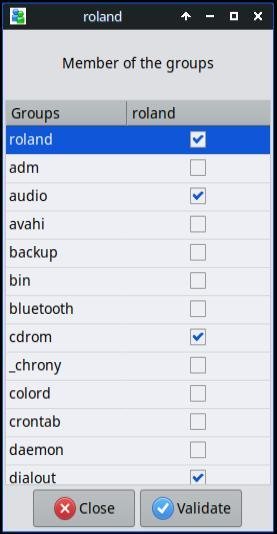 Usegroup works in user or administrator mode, the interface uses the GTK dialogs of Yad or Zenity.