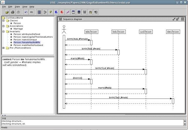 USE is a system for the specification and validation of information systems based on a subset of the Unified Modeling Language (UML) and the Object Constraint Language (OCL). Please report any encountered bugs using the ticket system.