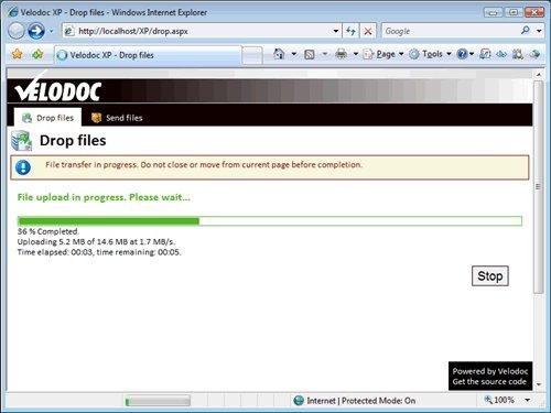 Memba Velodoc XP Edition is the open source core of the Velodoc platform for publishing, sharing, sending and transferring large files. It is constituted of ASP.NET Ajax server controls, modules and handlers for uploading and downloading large files.