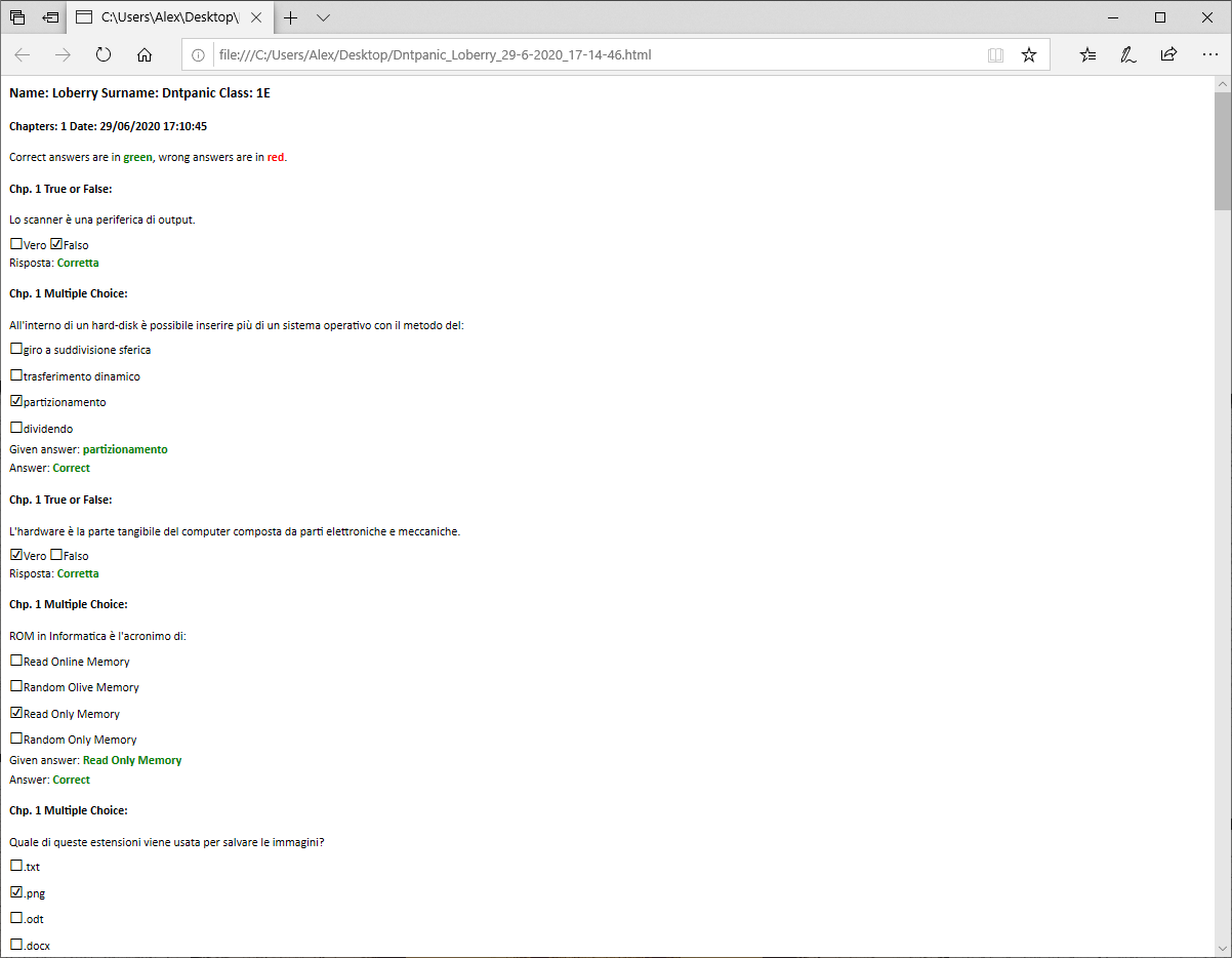 The VerificaMe program for Windows allows students to be verified via computer and obtain an immediate and printable result consisting of grades and mistakes made by students. The purpose of the program is to simplify and automatize the correction of the written verifications.