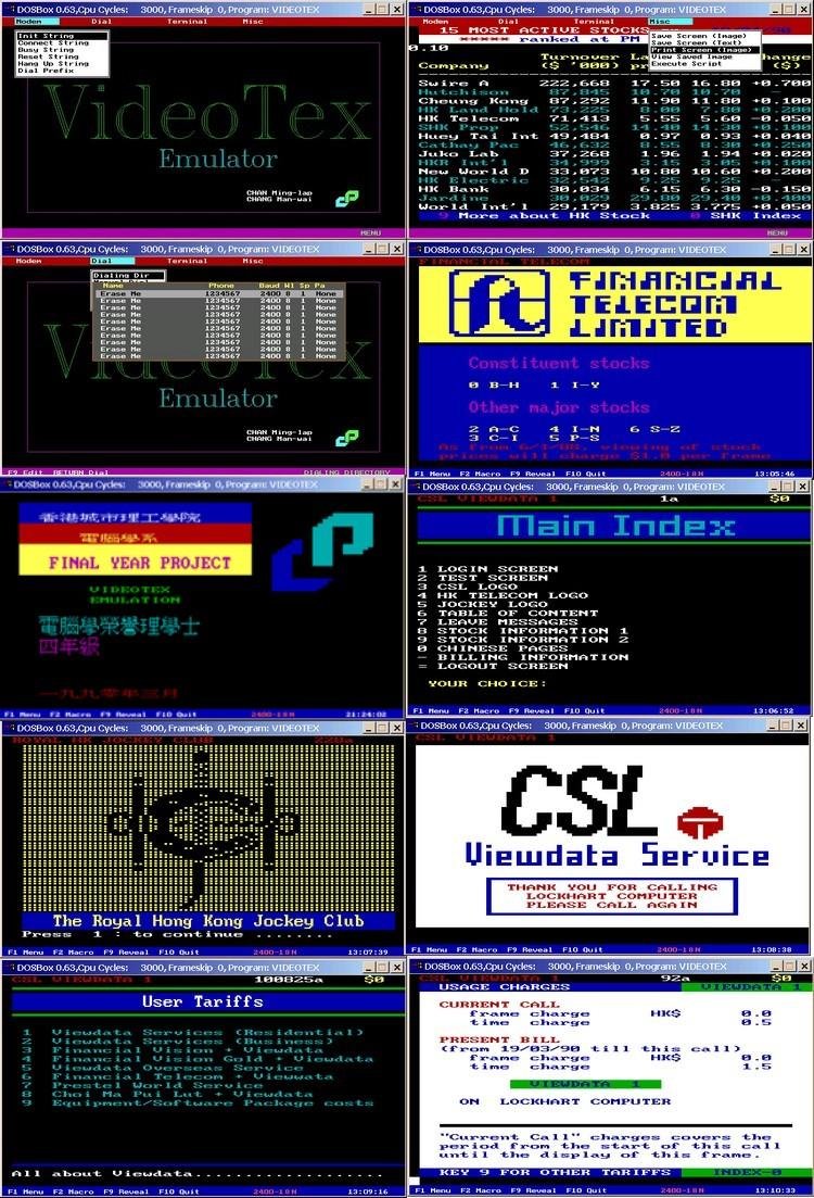 This is a final-year programming project aimed to build a terminal emulator for Videotex (Viewdata) over a 2400 baud dial-up modem connection. This project won a little award from Hong Kong Computer Society. Borland's Turbo C for DOS 2.0 was the programming tool.