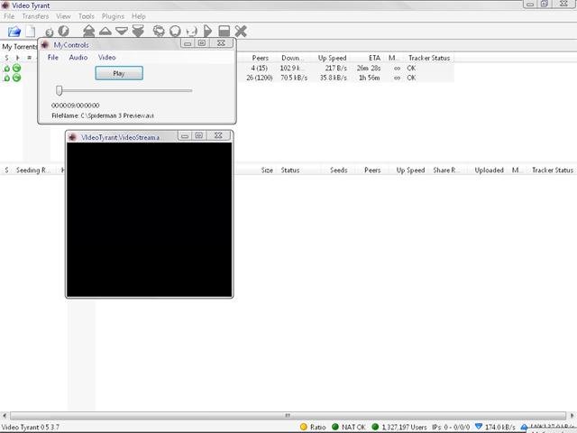VideoTyrant is a program that can stream video through the Bit-Torrent network. This program does not require specifically coded torrents or anything. It has the GUI of Azureus all with the power to stream.